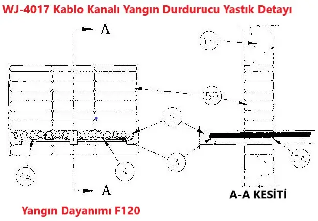 Şaft, Duvar geçen Kablo Kanalı için Yangın Durdurucu Yastık uygulama için WJ-4017 nolu detayda MC Yangın Durdurucu Yastık kullanılmış ve F120 yangın dayanımı sağlanmıştır.