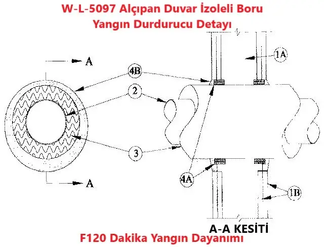 W-L-5097 Alçıpan Duvar İzoleli Boru Yangın Durdurucu Detayı